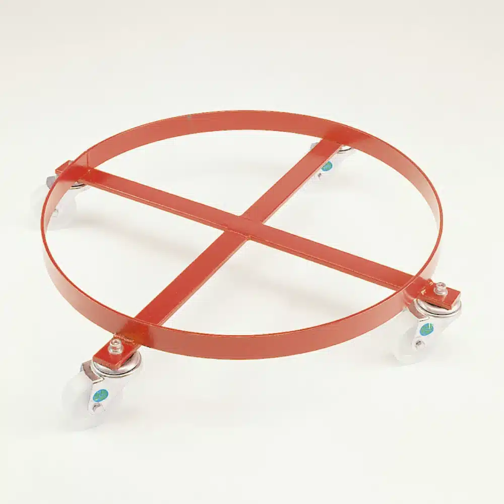 Standard & Heavy-Duty Options: Choose traditional circular drum dollies featuring flat steel braces and solid circular retention rings, or opt for our immensely strong fabricated 4-wheeled drum dolly designs.